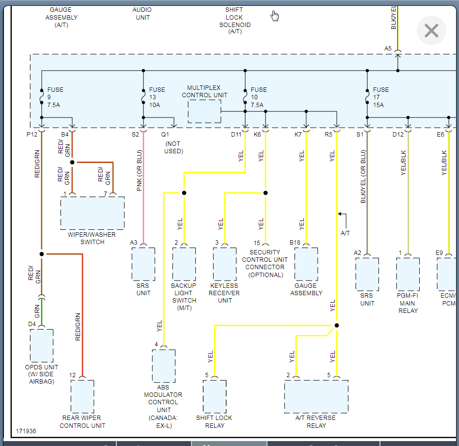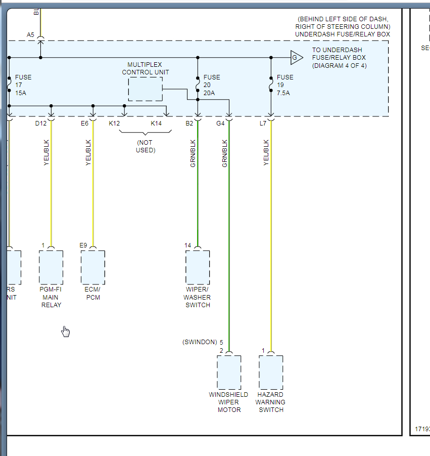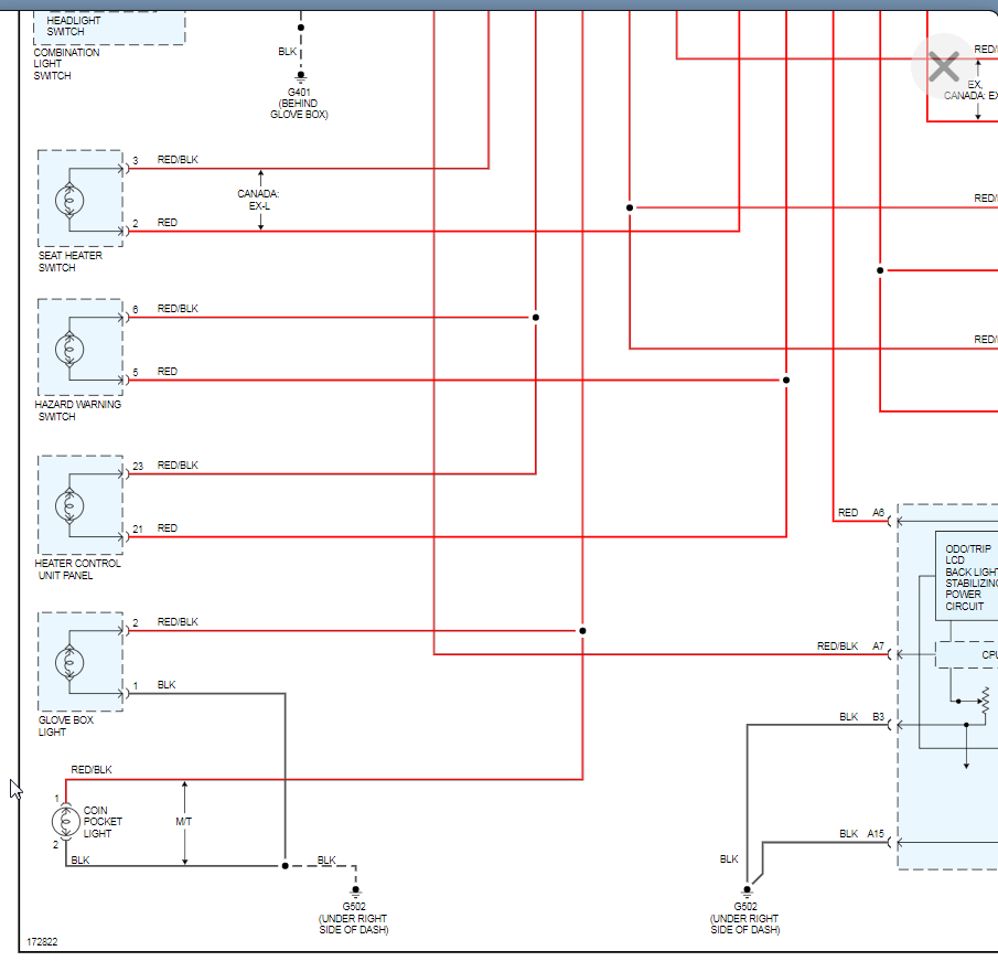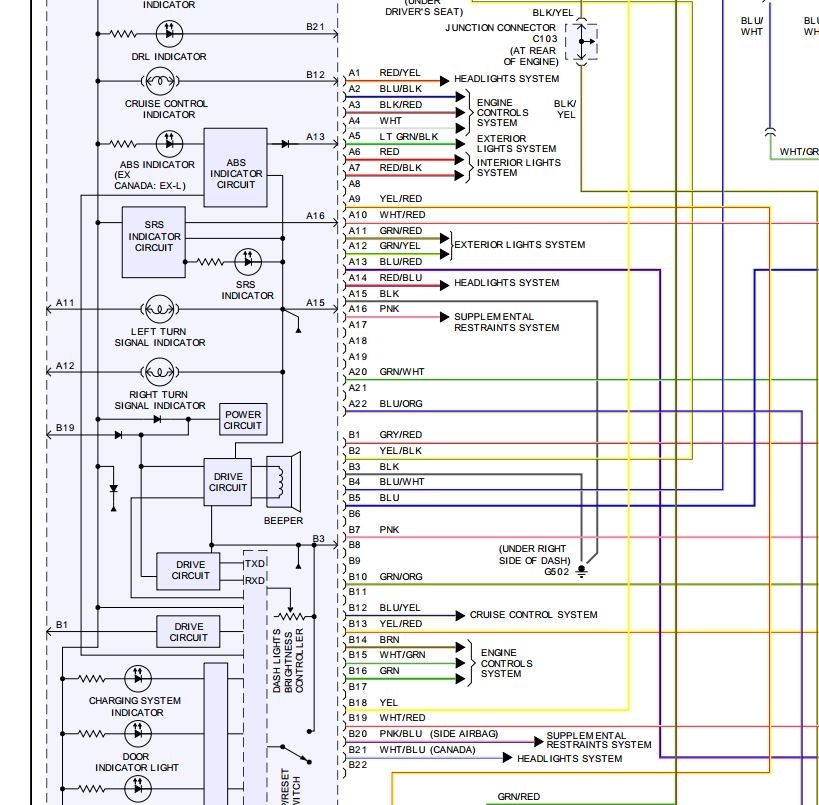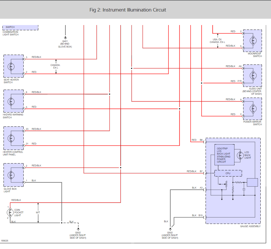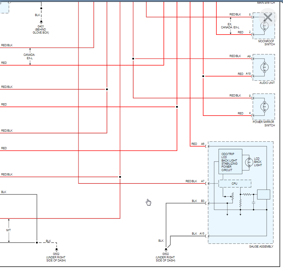 looking at this wiring diagram I got elsewhere, also for 03 CRV, shows a link between B3 and A15 (which I think it s typo and should be A3 and B 15, because both show G502 which looking at both wiring harnesses, is ground. But if the ground is simply a screw somewhere, how can it be a bad ground from a light bulb shorting?