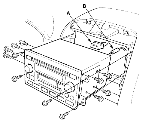 Once you have that you remove the center dash trim panel 2 screws and gently pull it away to free the connectors and remove the hazard switch connector. Then 4 screws let the stereo come out of the dash.