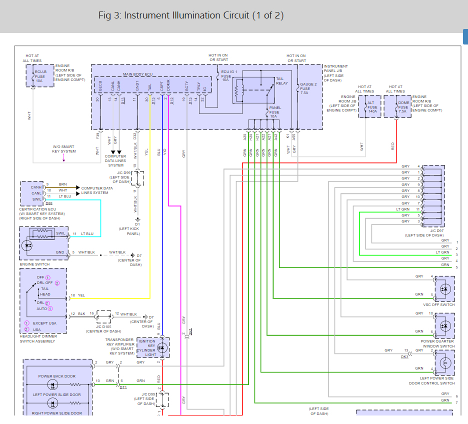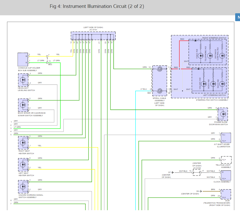 Check out the cluster wiring diagrams so you can see how the systems works and the fuse panel definitions as well.