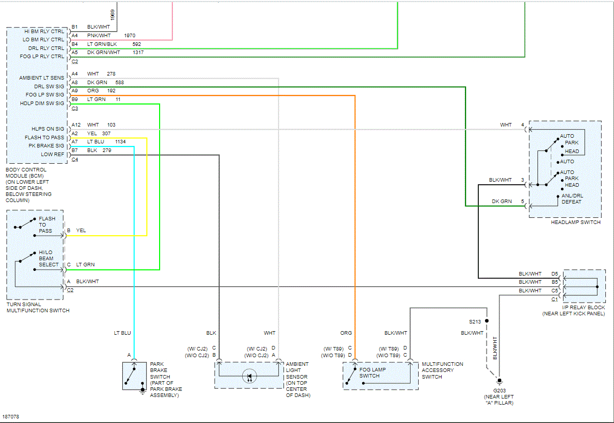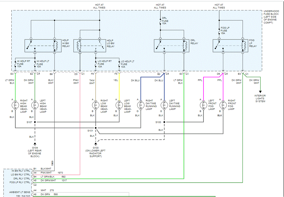 No problem. I attached the schematics for the headlamp system/DRL. I had to cut the pic in half to make it more readable, but I did overlap the two so you can follow them easier.