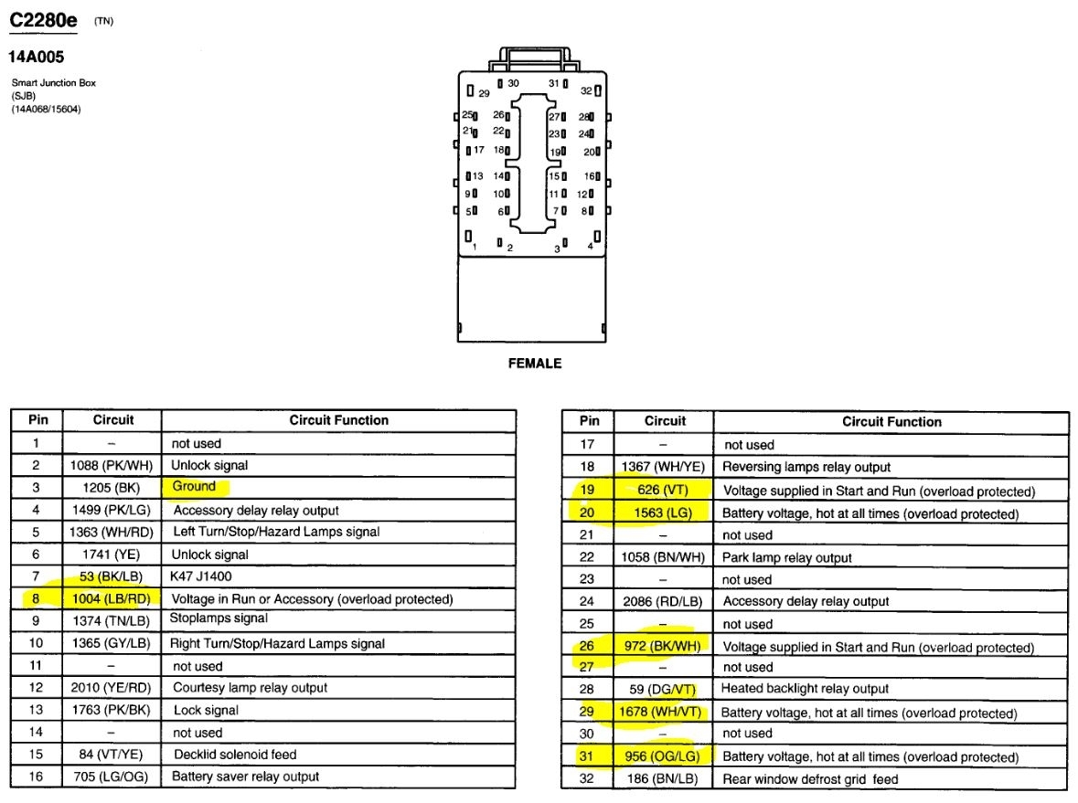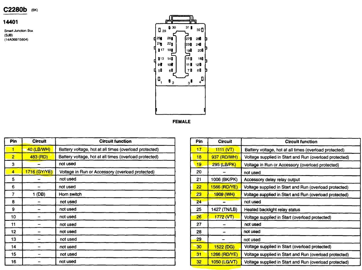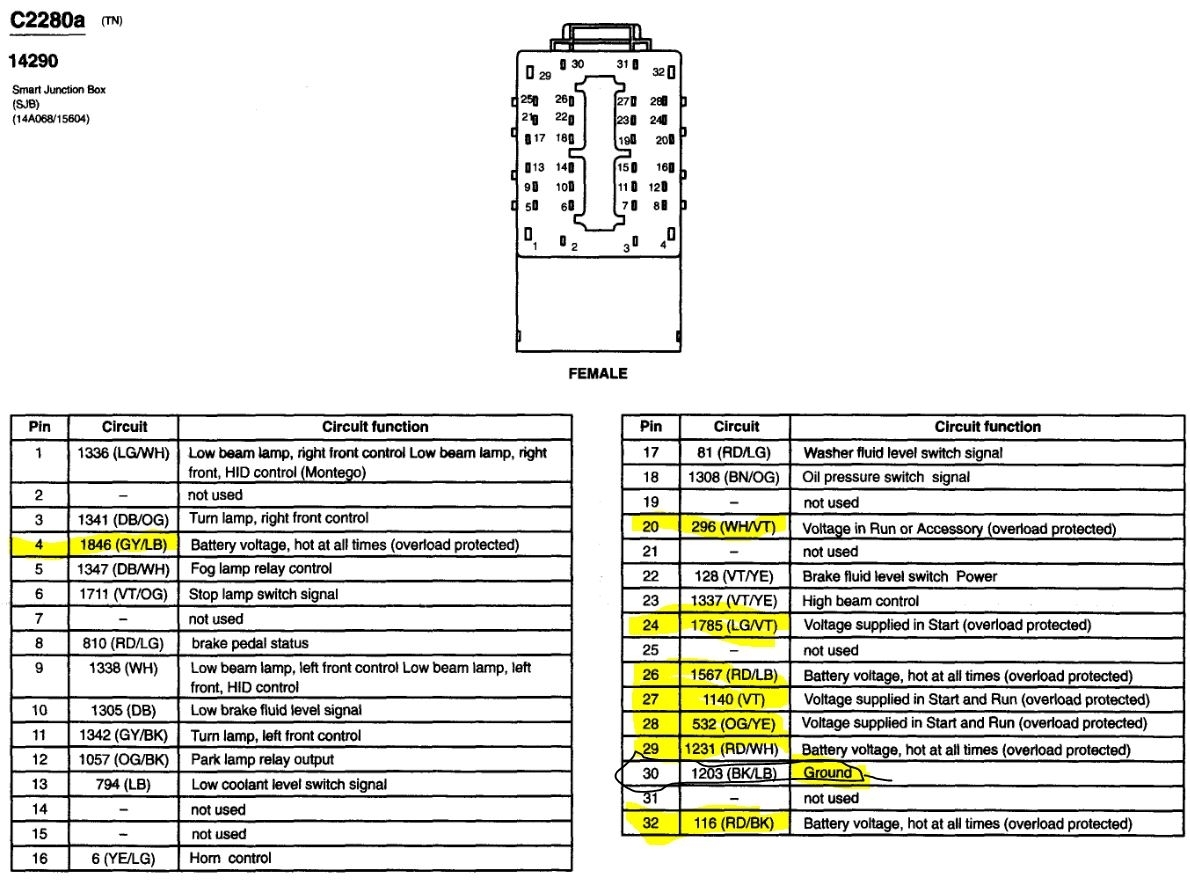 The first image is the SJB, the next three are the power and ground connections for it. There are two other connectors but they do not have power and ground pins, only control and output signals. Testing for powers and grounds is easy using a cheap test light and reading what the pins do, some have power with the key on, some in start and some are full time power.