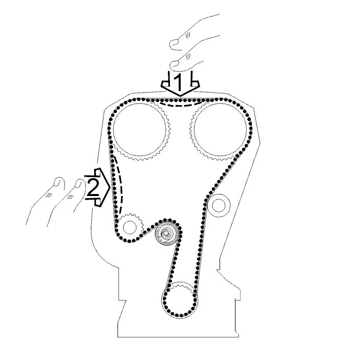 turn the crankshaft clockwise carefully until the camshaft belt is tensioned. The belt should be tight between the intake camshaft pulley, idler pulley and crankshaft.