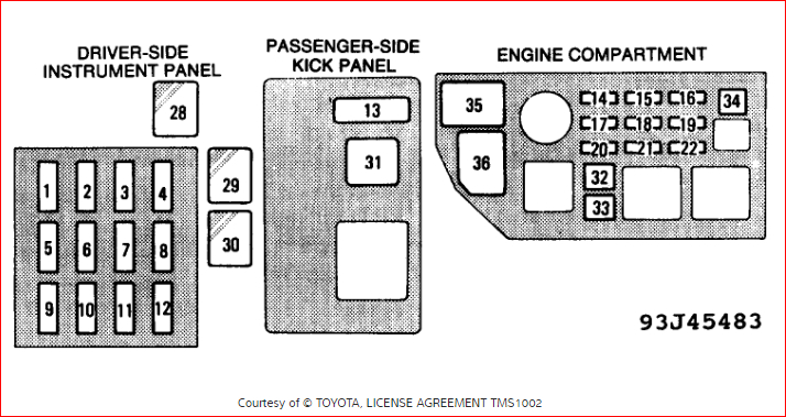Someone stole my battery, radio,everything in the glove box and trunk, and my diabetes medicines, but the strangest thing, but true they took all my fuses and relays and covers, I need a picture /diagram of the fuses, relays and amps of fuses. I tried getting it off the internet, but there not right, and I can't afford to buy a manual after buying the stuff above, so I;am turning to you guys for help please again. Ken or my buddy Steve W. really I would be above and beyond grateful for your help. thank you. brotherbuzz.. 2carpros member