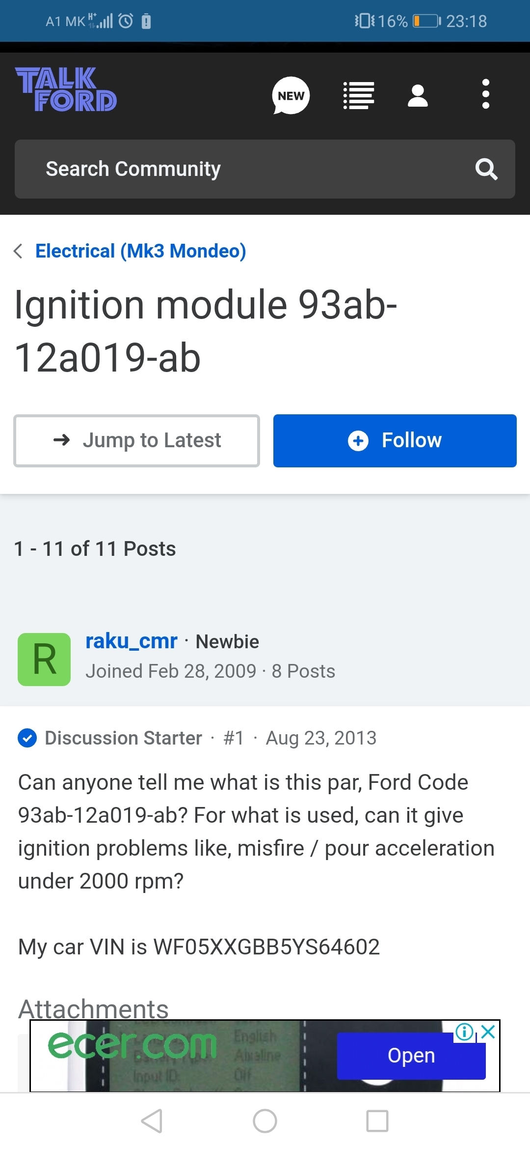 So now that I say this, how long did it take for the new coil to have a weak spark? I understood that it was immediate. Meaning you had weak spark, put the new coil on it and still had weak spark as soon as you started the engine.