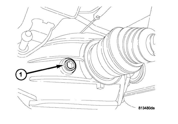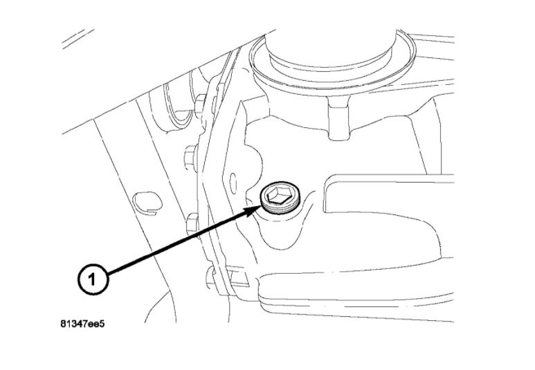 5. Remove fill plug (1) and fill rear axle with 1.4 L (1.5 qts.) Mopar Synthetic Gear & Axle Lubricant 75W140.