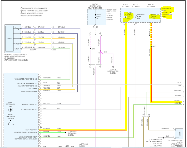 As far as the issue. I attached a portion of the schematic below. (See pics 1 and 2) I need you to start by checking two fuses in the interior fuse box. I highlighted them in pic 3.