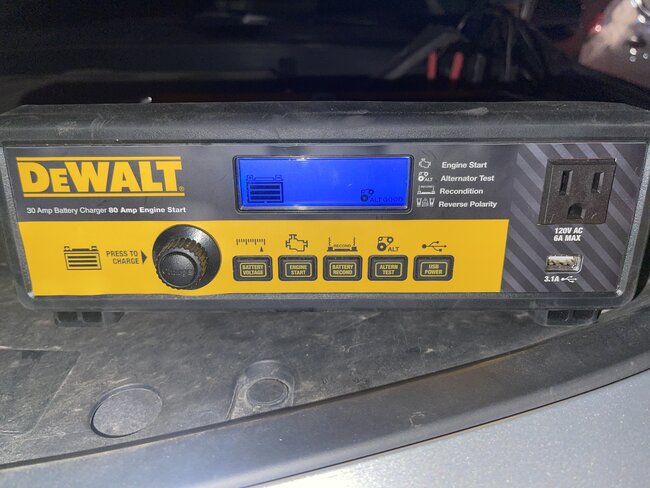 Ran my Dewalt unit on Alternator test mode and it came up good as you can see in the picture. I the voltage when the car is on accessory mode (not running) was at 11.5v and when the car is started, with lights on, radio on, goes up to 14.7 range, and stays there until it’s turned off.