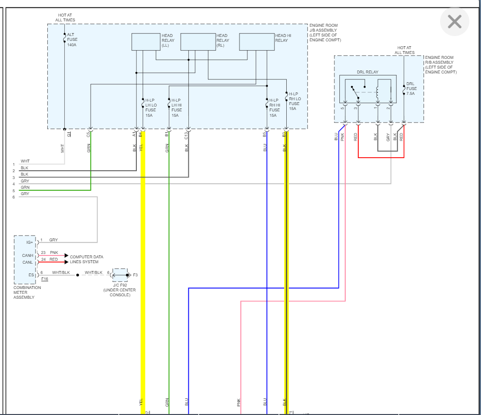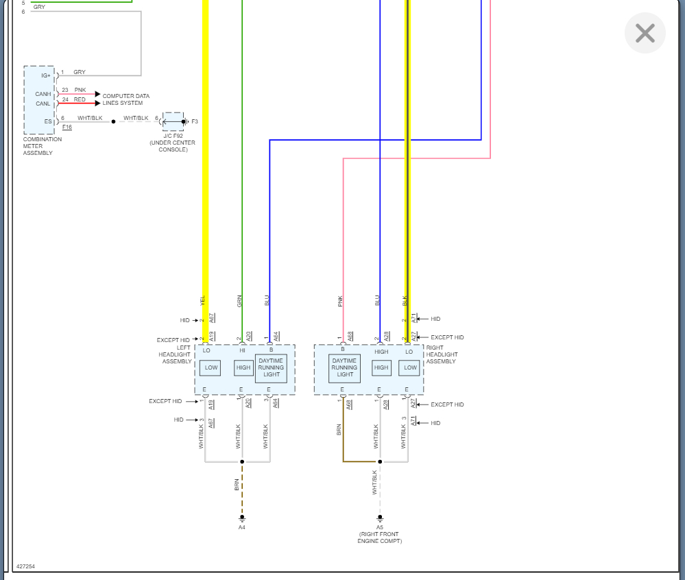 All other lights work. Not bad bulbs I already tried swapping. Checking fuses under the hood. All good except #49 which is for HID. Fuse not blown. Checked contacts without the fuse while engine on and headlight on, no power on #49. I cannot find a relay. Only relay is for DRL. Low beam on but not light up like before. Power to both ballasts okay.
