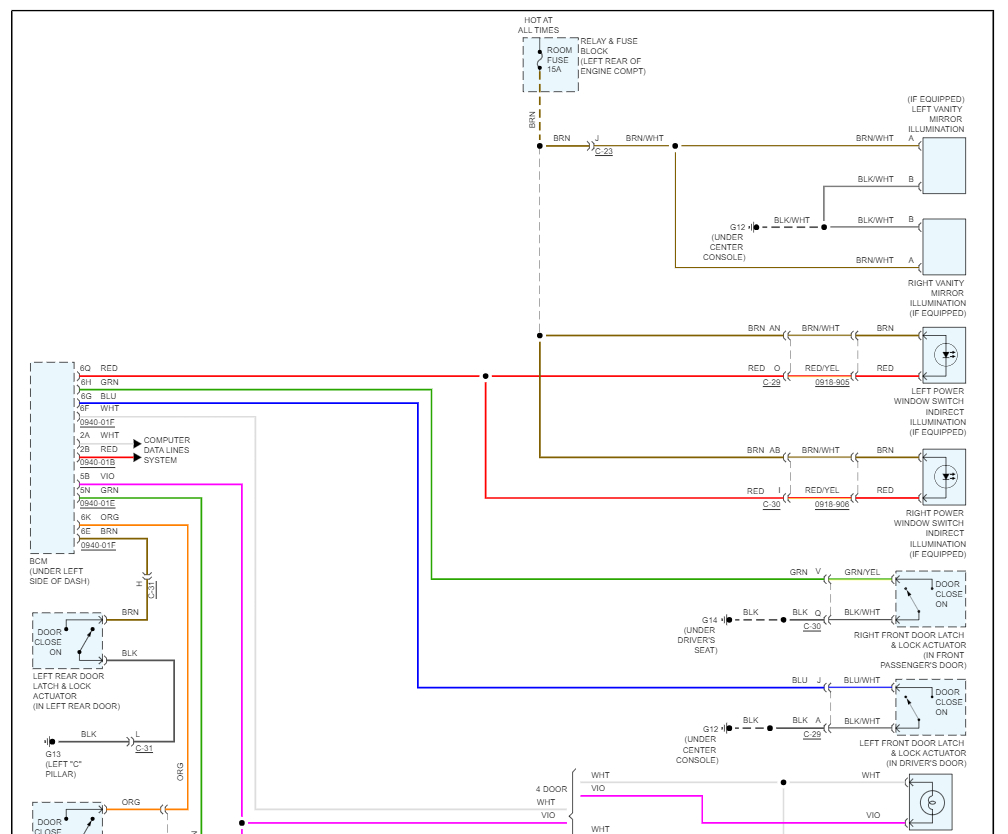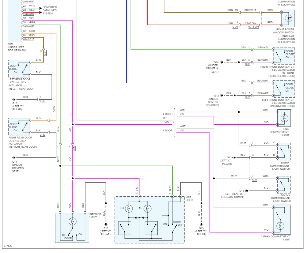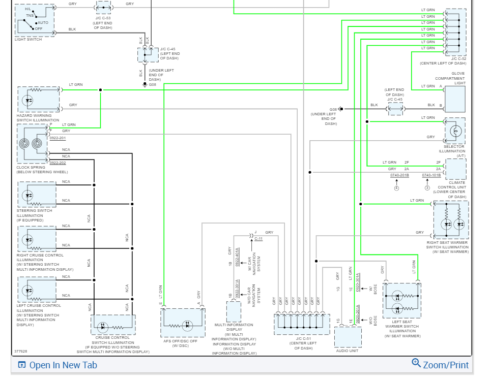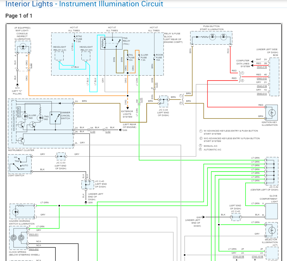 I want to install LED light in the footwell of my car. I want a diagram where I can find illumination wire inside the car. I have found that its fuse is in the engine fuse box.