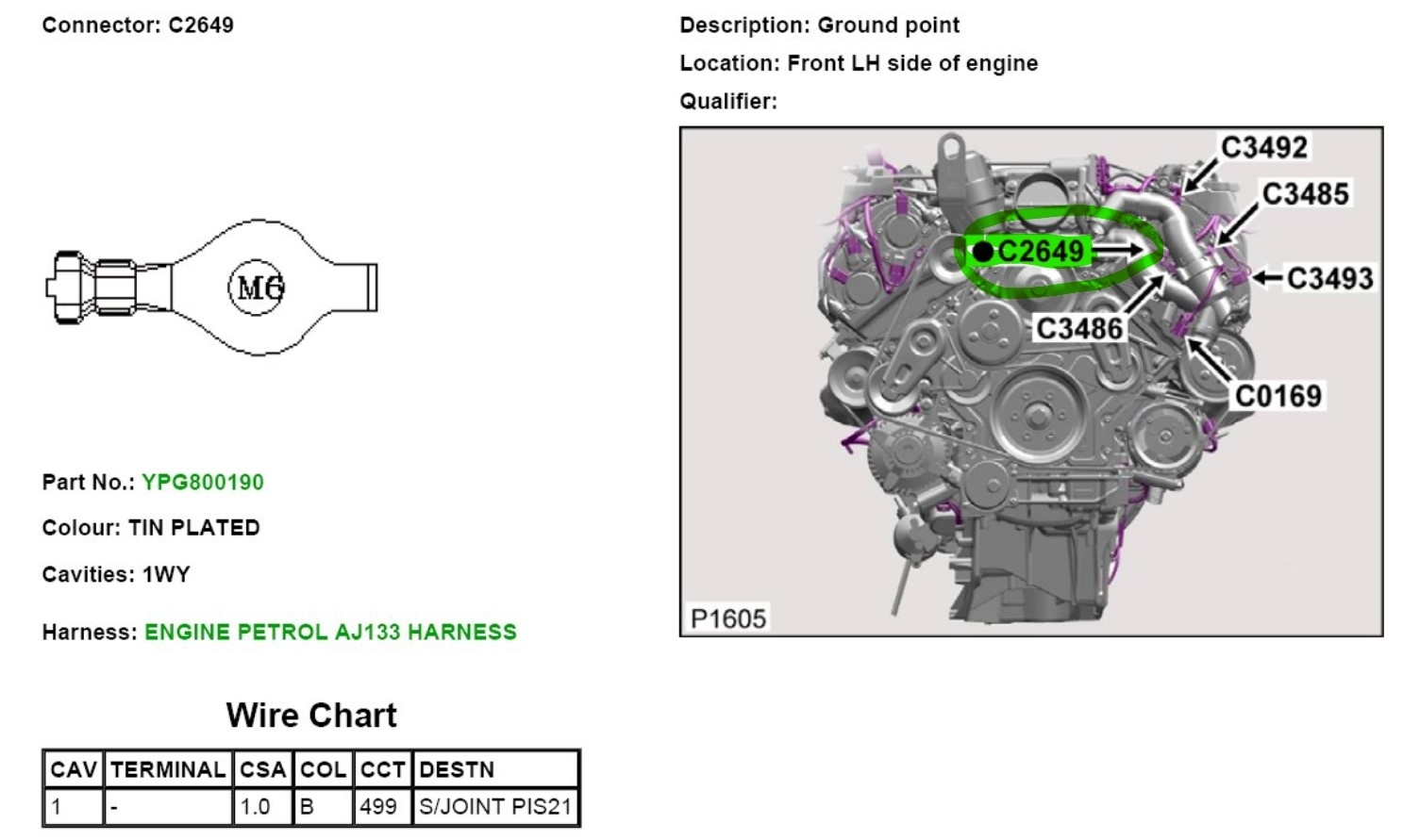 However, I'm thinking that it may not be the problem. Being a single bank misfire there are not many things that only apply to one bank of the engine. In this case the main single item is a ground point for all of the fuel injectors on that cylinder bank. A bad or missing ground would also show as misfires. Both sides share a power feed but not a ground. A simple way to test would be a cheap test light. Connect the light to battery positive and then pick the easiest injector connector to get to and unplug it, use the test light to touch the middle pin (black wire) in the connector. That is the ground pin. The light should light up strong. I suspect it may, but the ground still may be corroded. The ground would be at the left front of the engine, and it would have 4 wires all crimped into a single ring terminal. That style connection is very bad for corroding. I would look there first. Then if cleaning or replacing that ground point doesn't change anything, I would test the power side of the injectors as well, for that you connect the test light to battery ground and touch pin 3 (white wire). If it lights, then it should have power. If those are both good, then I would look at the TSB. Be warned that the parts are not low cost, and you will need a labor guide to do the repairs yourself as Rover tends to complicate many vehicles. For the guide you can get a DIY version of the service information from either Mitchell (eautorepair.net) or Alldata (alldata.com). They both offer monthly, yearly or multiyear plans for a single vehicle with Mitchell being FAR more affordable and they offer money back if you get in there and discover that the DIY side tosses around things like "Take the vehicle to a dealer" instead of listing a repair. I'm not sure if they do that but in some of the DIY "service" manuals out there it was a common thing to make it seem like the dealership had special powers.