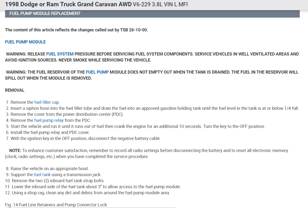 need to know when replacing the fuel pump on this caravan,do i have to drop the fuel tank,or can i go inside the van in the back and go at it from the top,you know,take the rug out and unbolt the floor panel to get into it..please help me..