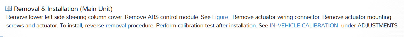 Turn ignition off. Remove left side lower column cover. Remove ABS control module. Remove mode door actuator connector. Remove mode door actuator. To install, reverse removal procedure. Perform calibration/diagnostics procedure.