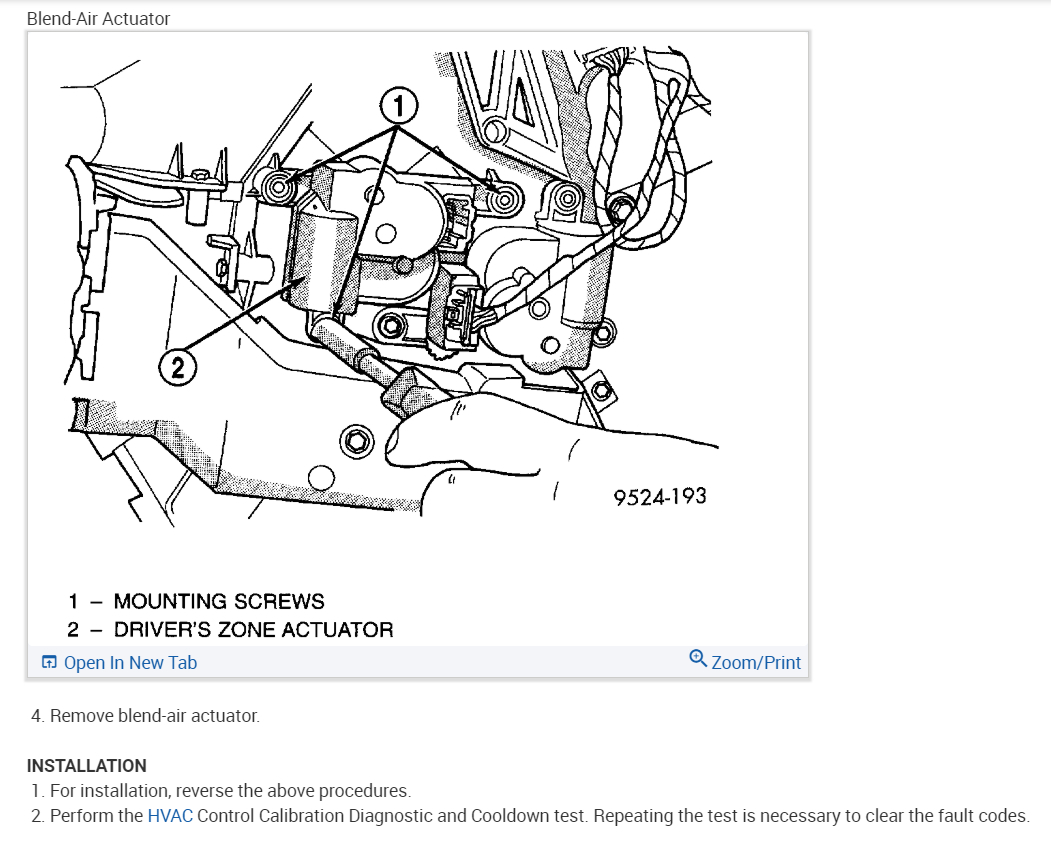 The HVAC control module stores trouble codes that a proper reader can retrieve. The system is electronic and the blend door actuator has a specific procedure to calibrate it. The actuator is under drivers side.