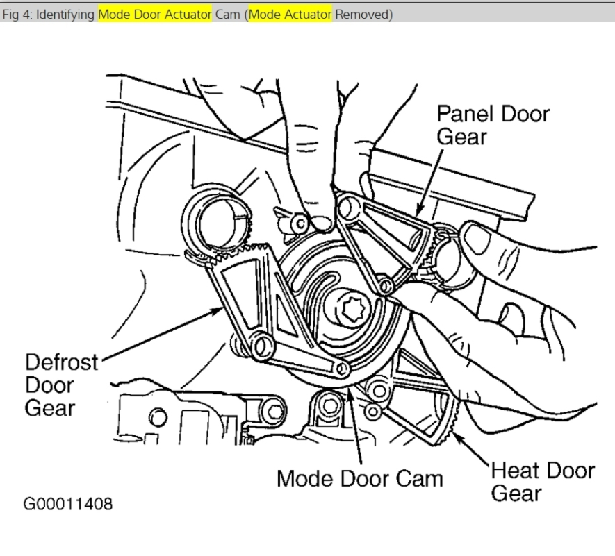 I had checked all the hoses they were hot but can't seem to find the blend door actuator do you have more diagrams? I also recalibrated the hvac control module it seemed to go through all the setting fine. I also have looked under the dash while it was operating to see the movement but didn't see any when it changed to heat setting.