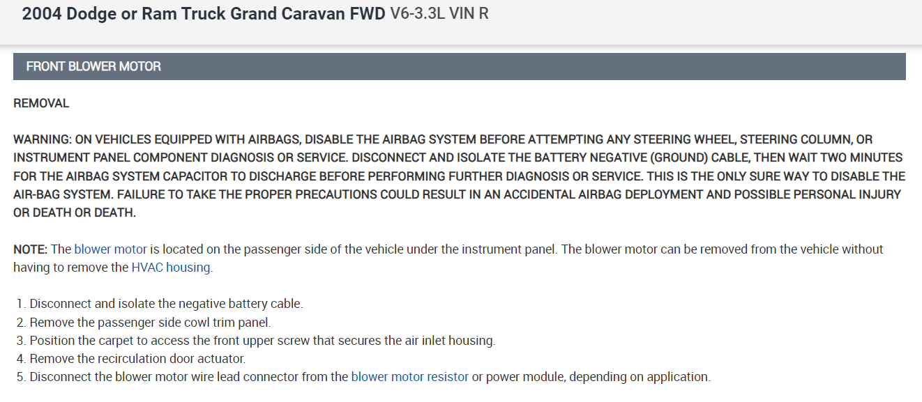 where is the front blower motor located?