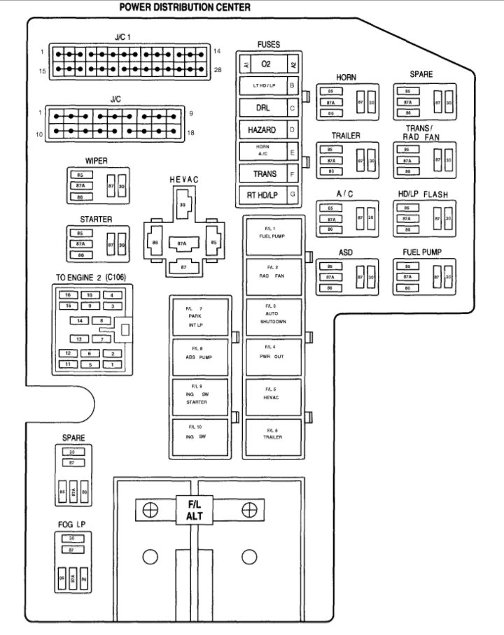 [quote:80ef9d9312="caradiodoc"]Hi dirtrider501. Welcome to the forum. First of all, understanding how the circuit works will help in diagnosing it. When you first turn on the ignition switch, the Engine Computer turns on the automatic shutdown relay (ASD) for one second to insure fuel pressure is up and ready for starting. Besides the fuel pump or pump relay, the ASD relay also sends voltage to the ignition coil, injectors, oxygen sensor heaters, and alternator field. If you hear the hum of the fuel pump for that first second, you know the ASD circuit is working.