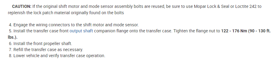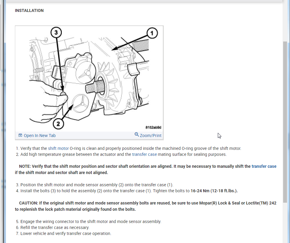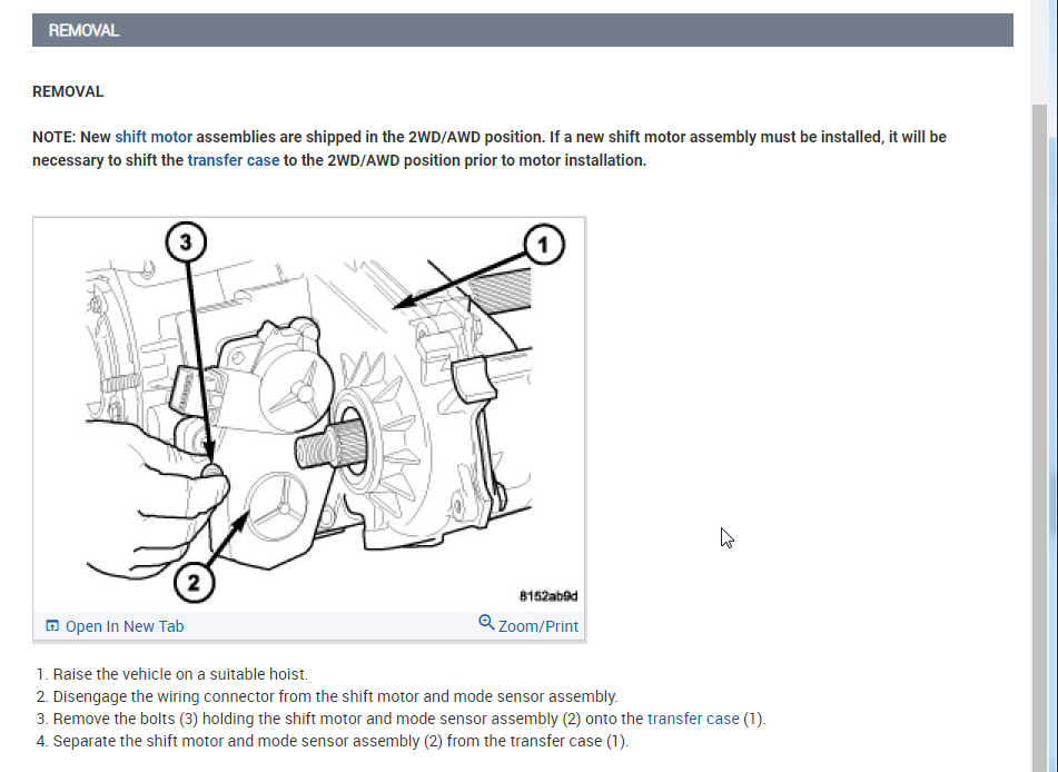 Note: New shift motor assemblies are shipped in the 2WD/AWD position. If a new shift motor assembly must be installed, it will be necessary to shift the transfer case to the 2WD/AWD position prior to motor installation.