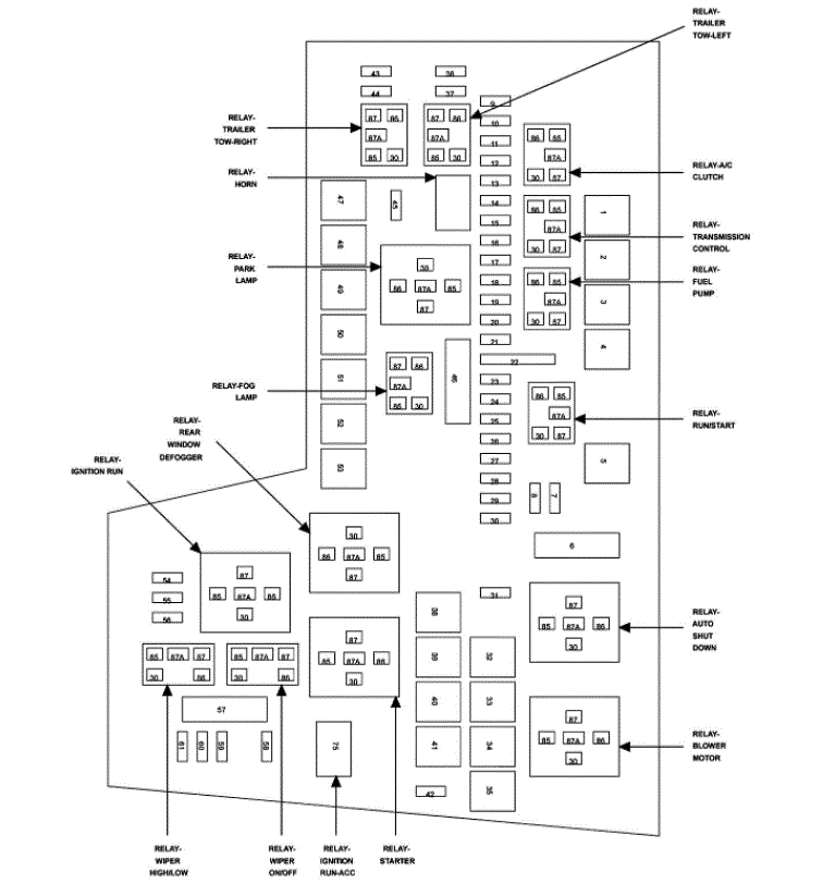 If you look at the attachments below, they provide the fuse box orientations and what each fuse is for.