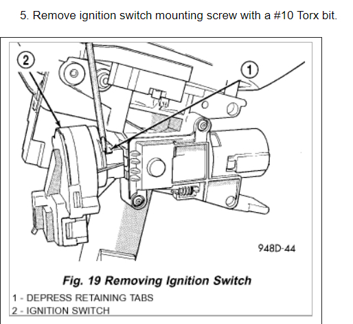 5. Remove ignition switch mounting screw with a #10 Torx bit.