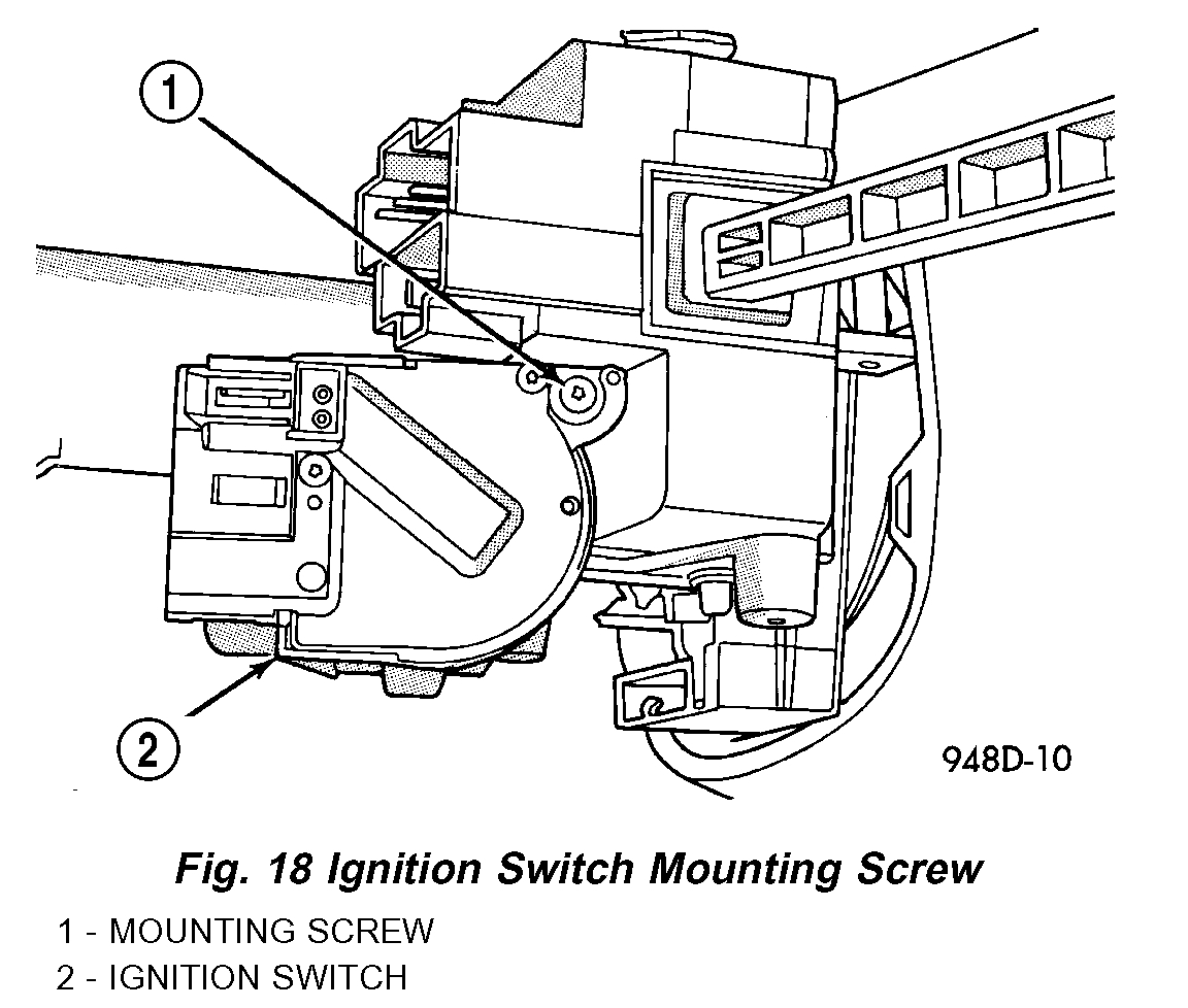 2. Carefully install the ignition switch. The switch will snap over the retaining tabs. Install mounting screw.