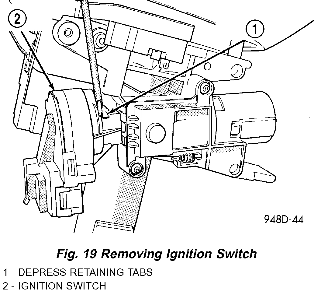 6. Depress retaining tabs and pull ignition switch from steering column.
