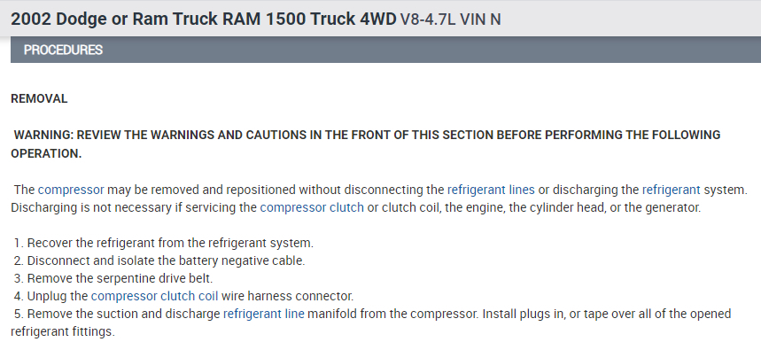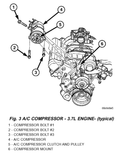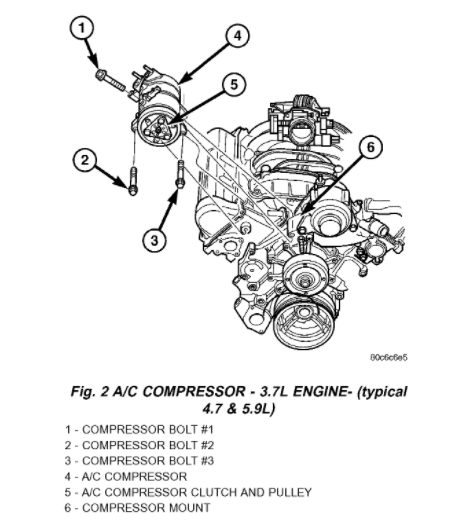 I've attached picture steps below showing how to remove and replace both the serpentine belt and ac compressor on your Dodge Ram. Hope this helps and thanks again for using 2CarPros.