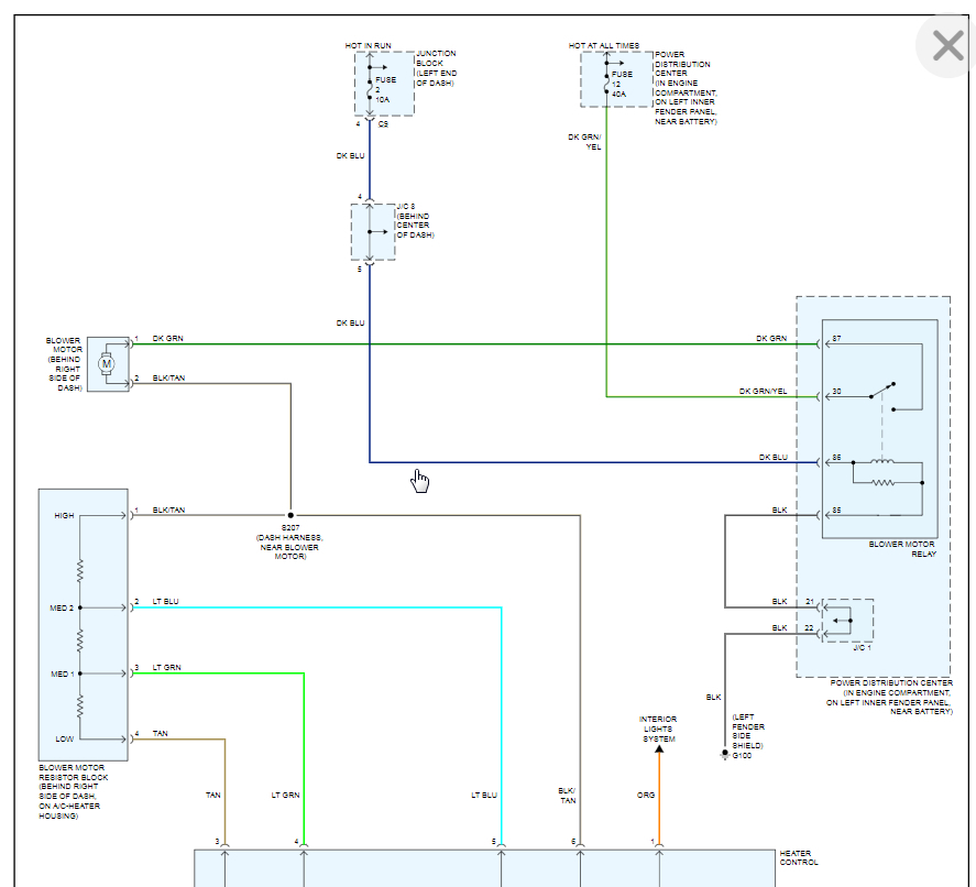 However, if you have no power to the fuse then you are not going to have power to the relay for it to close the contact to send power to the blower motor.