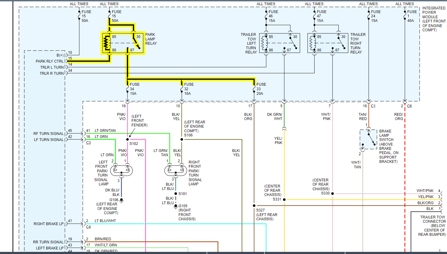Okay, thank you very much. I had read the answers to another 2002 owner, it said forget the FCM, fix the ground wire between the switch in dash, the module. A black wire g106?? Is it possible I just have a broken wire outside of that module? We don't know which wire connects to that module, feeds the ground to that relay. Says he needs to know which color the ground wire is in order to try to check the wire before buying a new box.