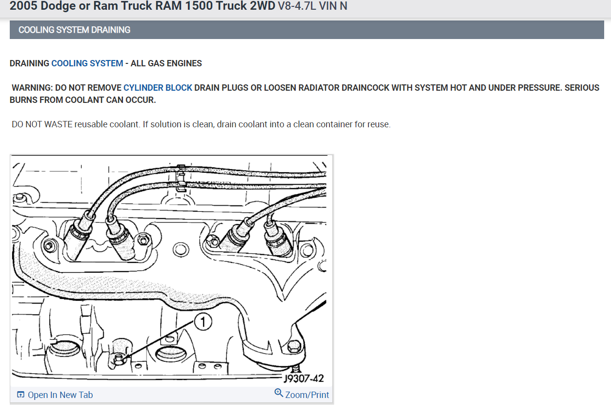 I had the cap off and it still would not flow like it should. I took off the bottom hose going into the radiator, put the cap back on, started the truck to let it warm up and it barely flushed. I removed the plugs to remove the remaining fluid.