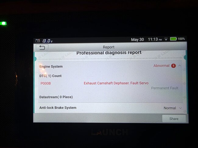 Code p000b - exhaust camshaft dephaser- fault servo.