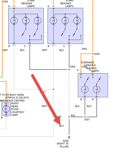 its ' black and connects to right B pillar, one between front and rear doors. see pic. it's same ground for all dome lights.