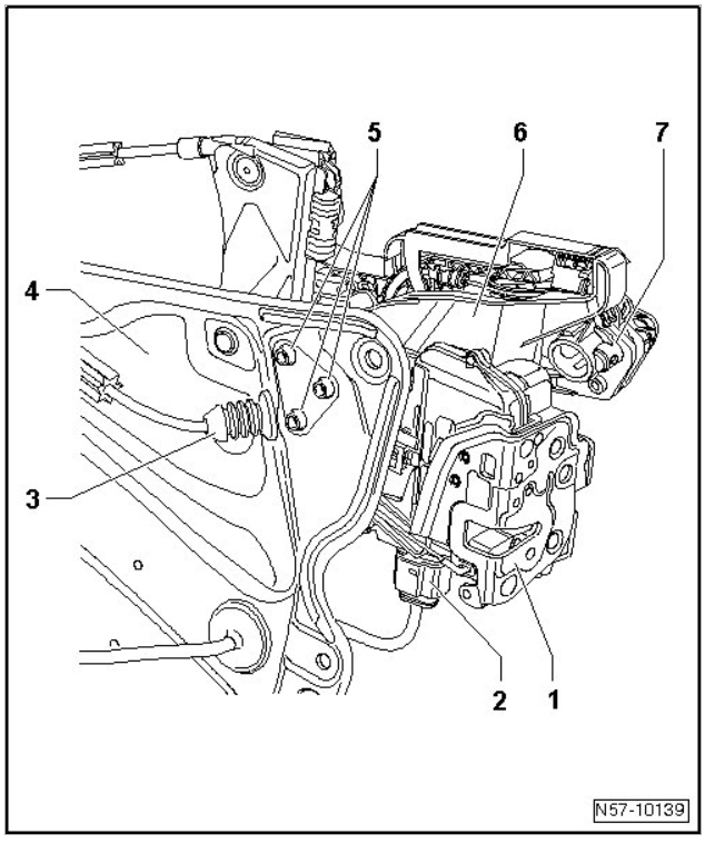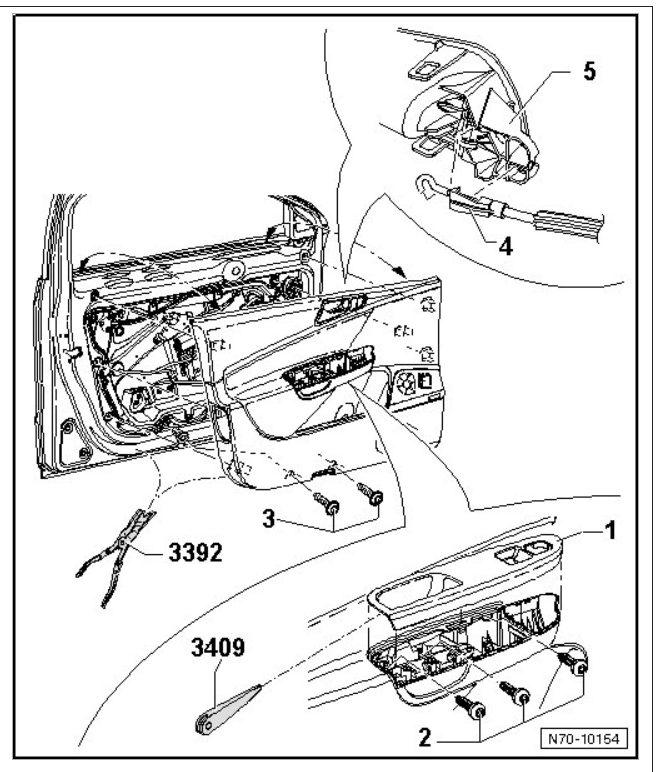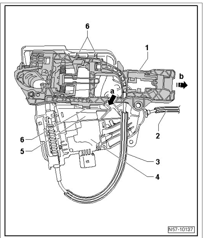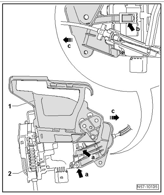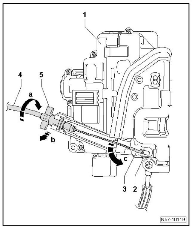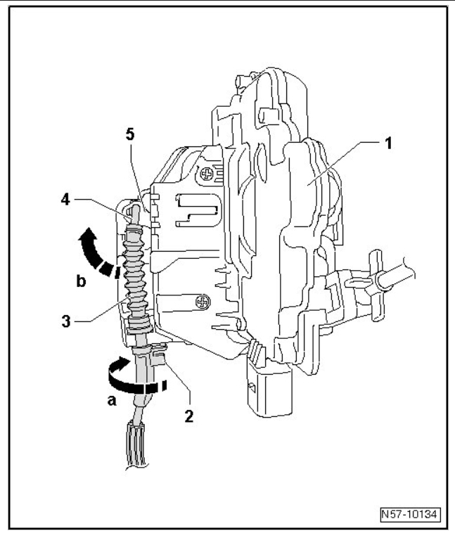 Swivel cable - 3 - in - direction of arrow b - and remove cable nipple - 4 - from eyelet - 5.