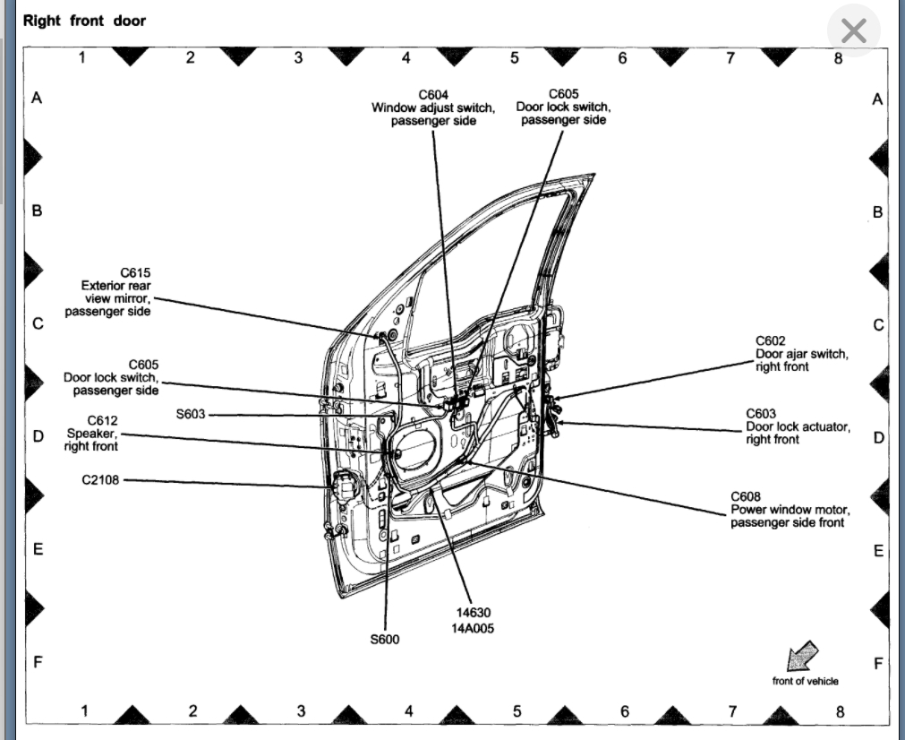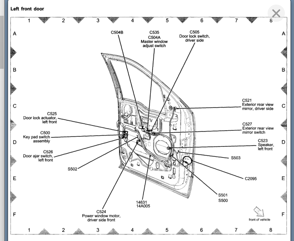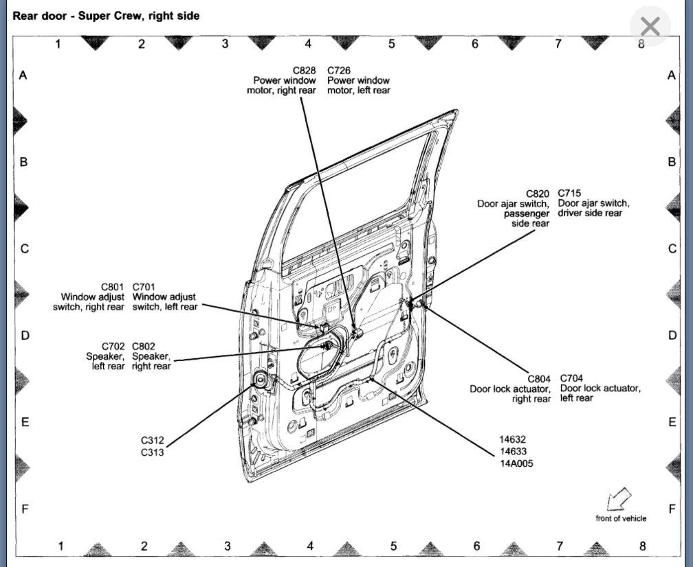 Where is the door button for the cab lighting of the 2004-2008 Ford F150, which illuminates when the door is open and goes out when the door is closed?
