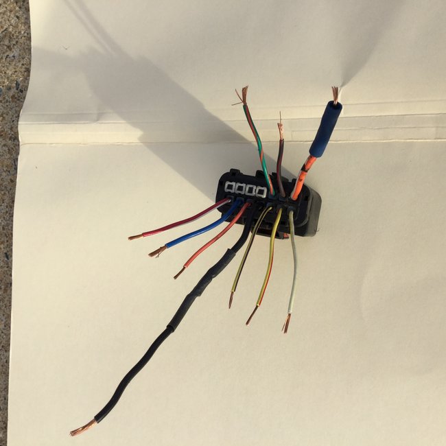 see picture. I show seven wires for Jeep 2004, yours may be for mirror, but with this diagram you should be able to see which wire is where as they are color coded.