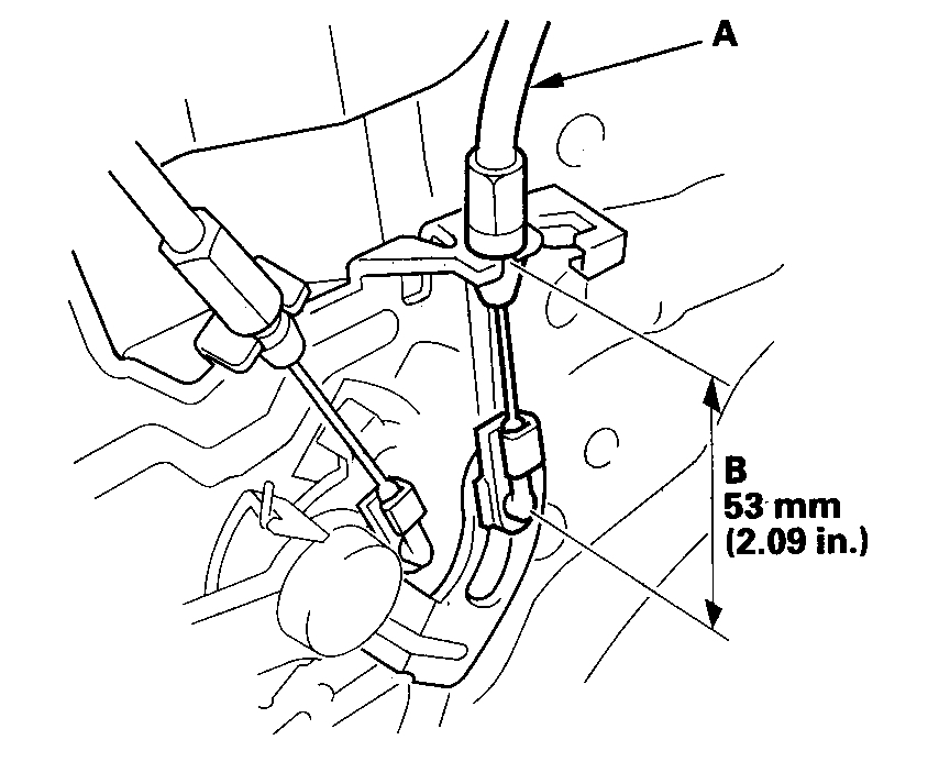 4. Confirm that the measurement (B) is 53 mm (2.09 in.) at the outer handle crank assembly.