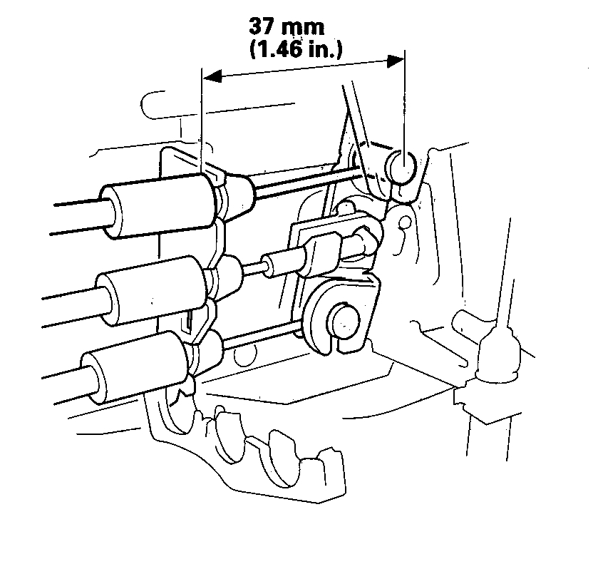 3. After the rear latch assembly is installed on the door and the failsafe lever cable is connected to the remote control assembly, check the measurement again; it should be 37 mm (1.46 in.).