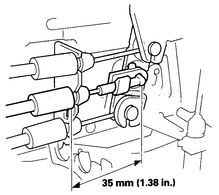 3. After the rear latch assembly is installed on the door and the rear latch cable is connected to the remote control assembly, check the measurement again; it should be 35 mm (1.38 in.).