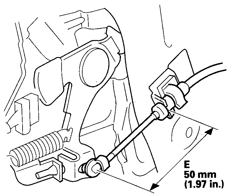 2. Set the adjusting nut so that the measurement (E) is 50 mm (1.97 in.) at the other end of the cable, and then tighten the locknut.