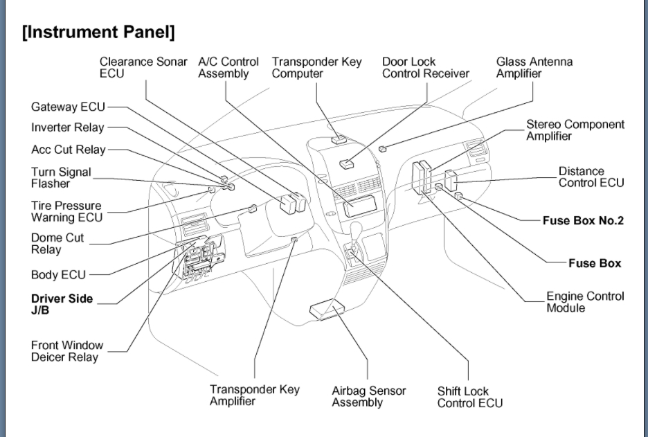Ha, i looked that part up on toyotapartsdeal.com, they call it a block assembly instrument panel junction. The pic. Looks like a fuse panel, down in their footnotes it says it is sometimes referred to a Toyota fuse box, Toyota relay block. I wonder if this has got a burnt place in it like i have seen in fuse panels.