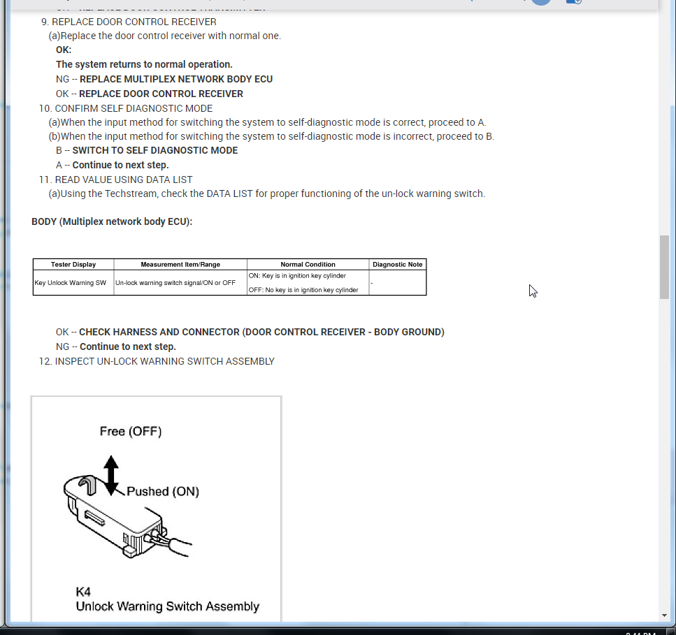 Okay, i just got home been to doctor visit. Toyota finally told me the part they said was bad Door Block Assembly part number 8273008071.