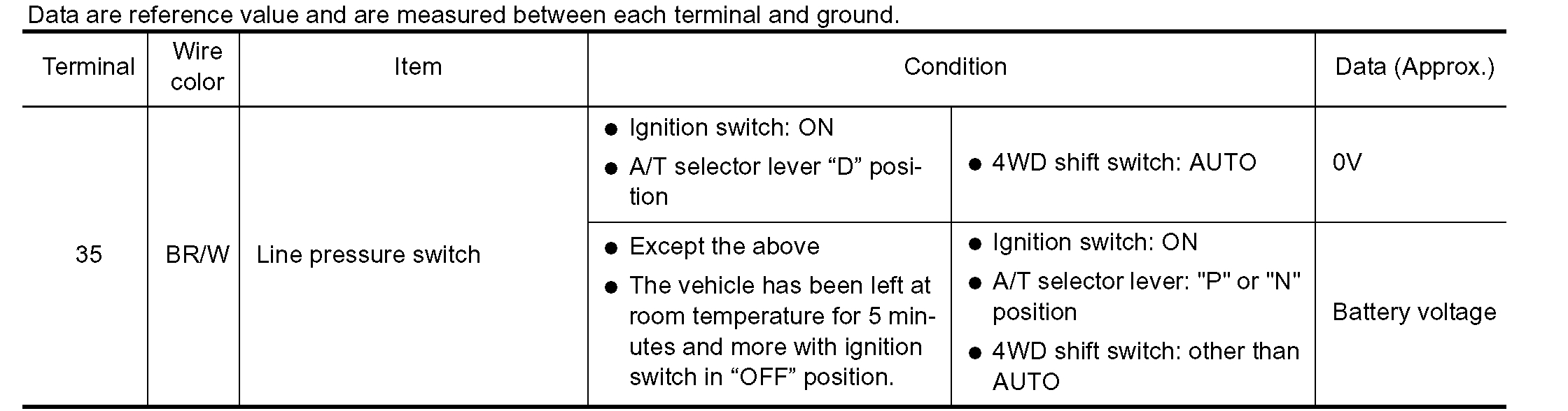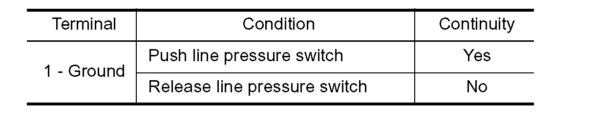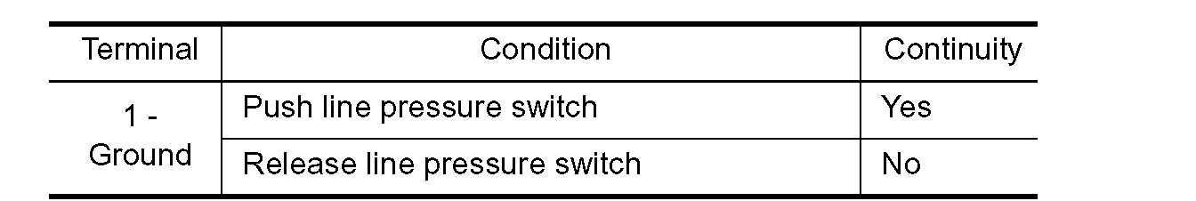 3. Push and release line pressure switch and check continuity between terminal 1 and ground.