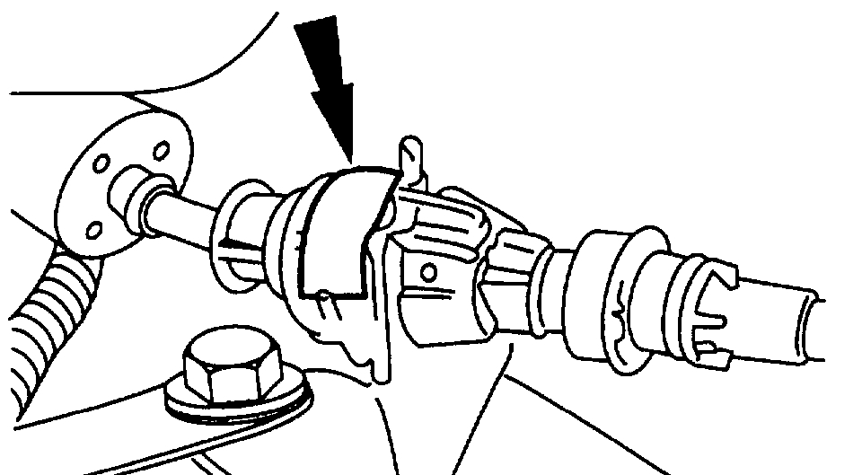 7. Push in the transmission shift cable adjustment lock tab on the shift cable body.