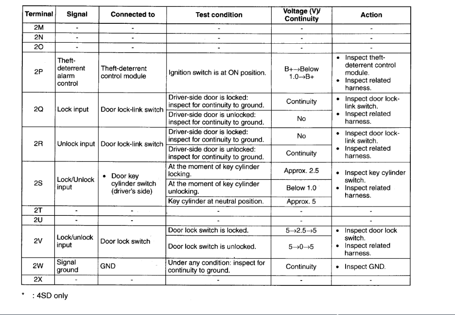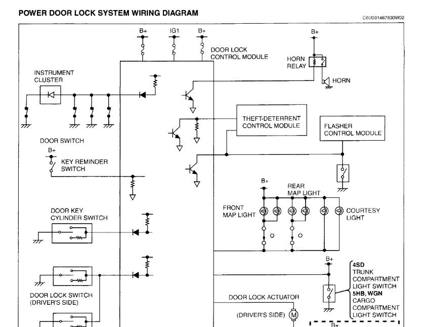 This could be a problem with your vehicle's Power Door Lock Module. In the diagrams down below I have included the schematics for your vehicle's power door locks, the wiring diagrams for the power door locks, and a troubleshooting guide for the power door lock module. Please go through these guides and get back to us with what you are able to find out. The troubleshooting guide will require you to use a Digital Multi-meter [DMM], so here is a link below explaining how to use one, if needed: