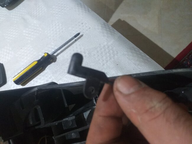 Looking at the part, it appears to pivot allowing it to move back and forth to move the mirror. I attached your pic below and circled where the pivot is located.