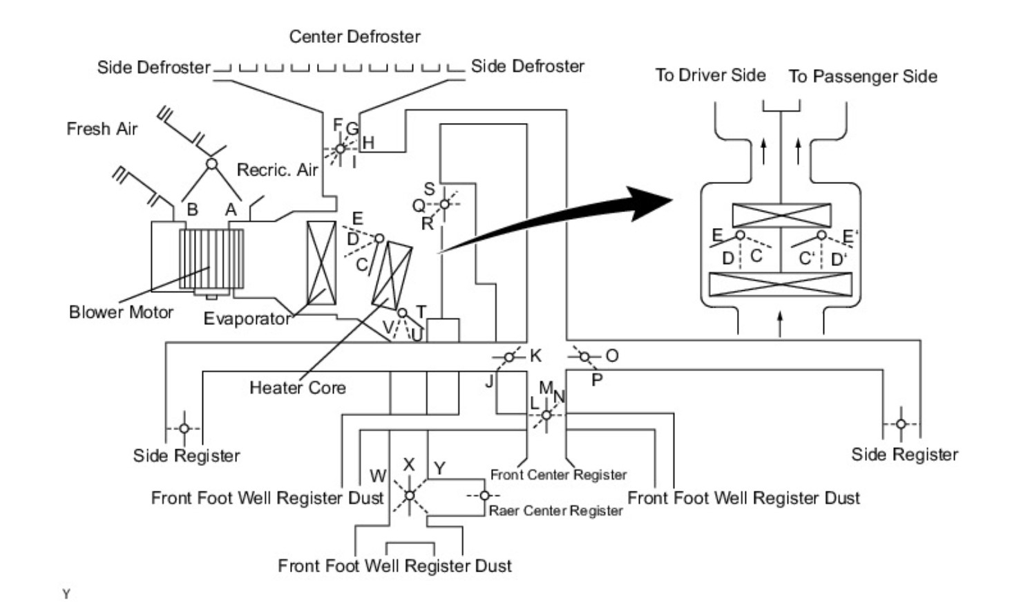 Hey Ken, in an earlier response, you make reference to other doors.."There is only one evaporator core so if one side is cold so should be the other if the doors are working correctly".