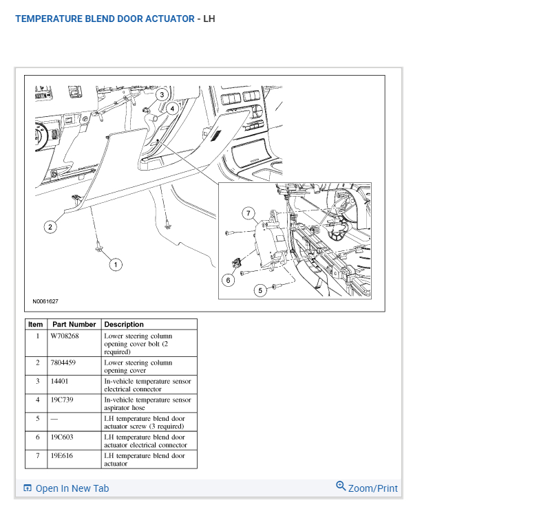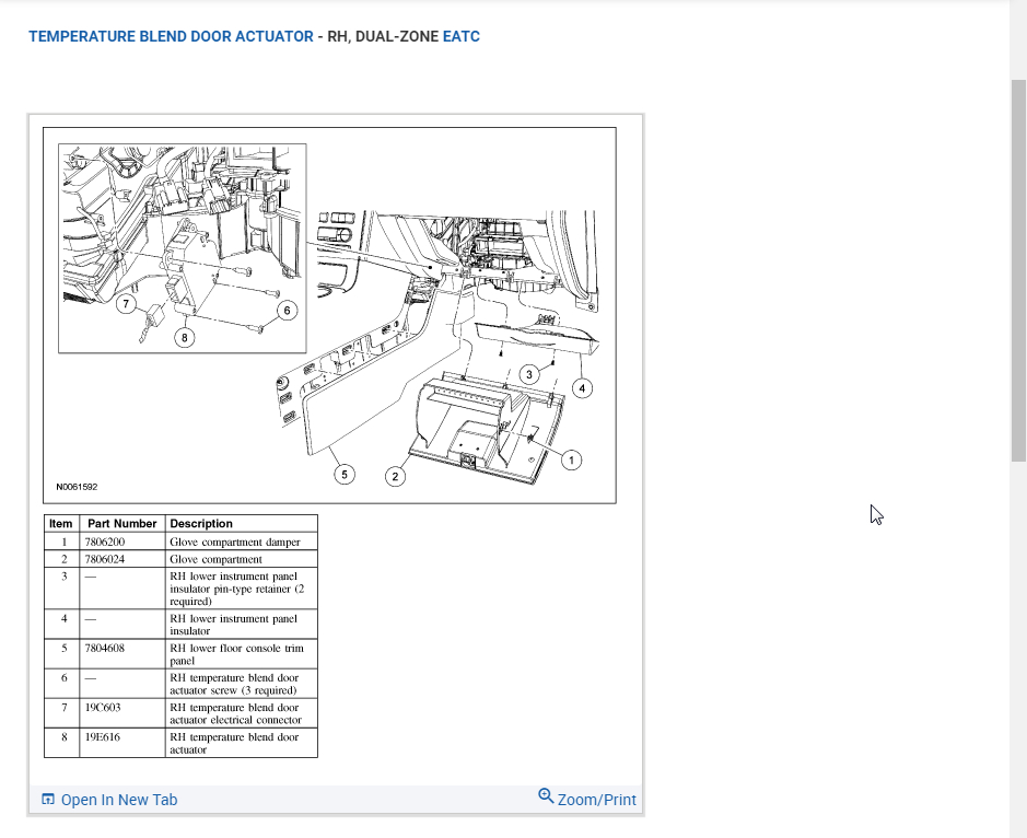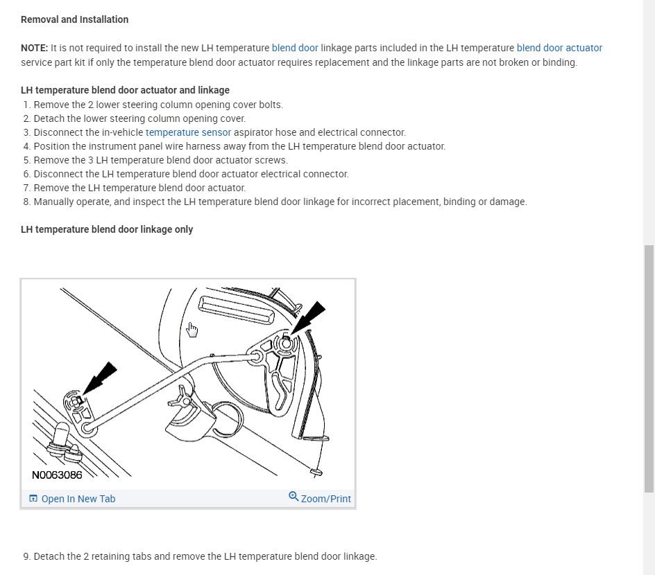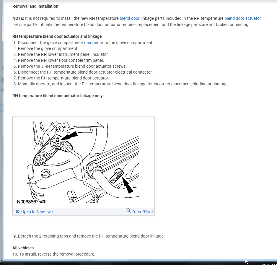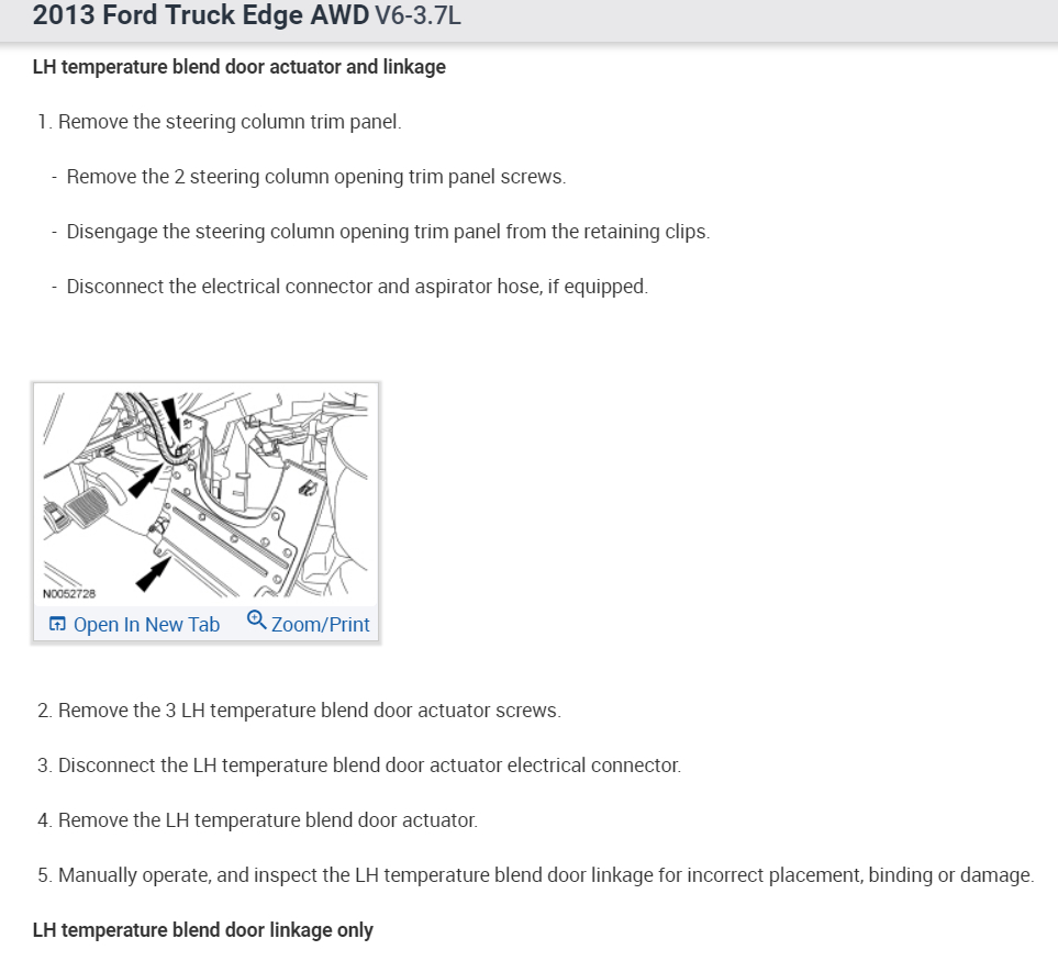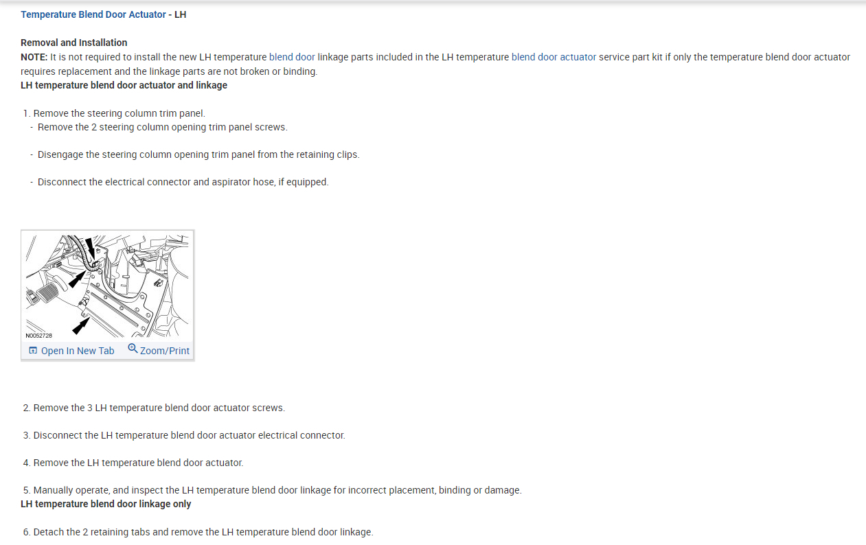 I have replaced many components on my own and intend to do the same here with some help, please. I need to know I am on the right track assuming the right hand blend door actuator is bad, no calibration needed, and I would need an accurate diagram for removal of my dash to get to it. The O'Reilly's fellas were very helpful but their printer is horrible and the diagrams they gave me are not showing the dash or how to remove it. Only what is underneath.i will supply image similar to the diagram I already have!