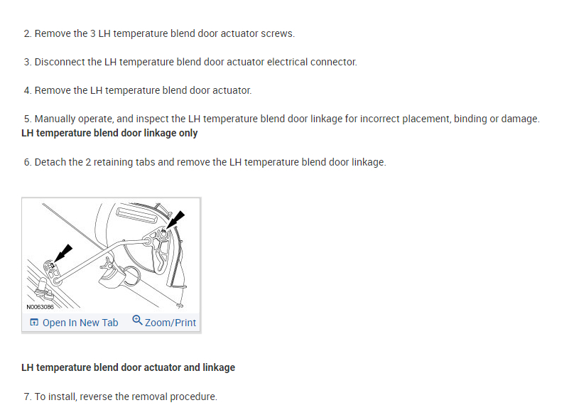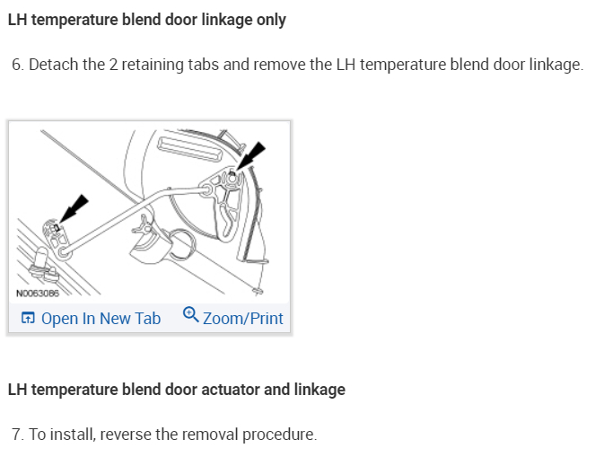 I try tricking the system by cycling through many various settings in no particular order. No avail. I read a new way to test is by manually moving the white lever on the passenger side blend door actuator. Video found of someone doing exactly this. Problem is that it seemed to control the passenger side only when I tried. This is the actuator to the left of the glove compartment once you pop it out of place. The passenger side works as designed so when I moved the lever the passenger side went hot. I am convinced this actuator is working as designed.