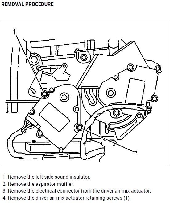 Okay. The next thing we need to do is remove the blend door actuator for the driver's side blend door. See the attached procedure. Once it's removed, you should be able to grasp the small gear on the housing(under where the actuator was mounted) and manually move the blend door from full cold to full hot(you should feel it hit a stop on both ends). While doing this, feel the air coming from the driver's side vents and see if it changes temperature accordingly. If you're able to change the temperature, the blend door actuator is most likely failed and needs replaced. Now if for some reason you don't feel the stops when turning the gear, the blend door itself is most likely broken inside the housing. If that's the case, the dash and housing will need to be removed from the vehicle to replace the door.
