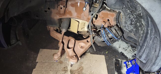 Driver side before I buttoned it up. Used rust killer on the parts and areas that I couldn't afford to replace including parts of the frame and shock Tower. Primed it painted it with some Rust-Oleum and good as new.