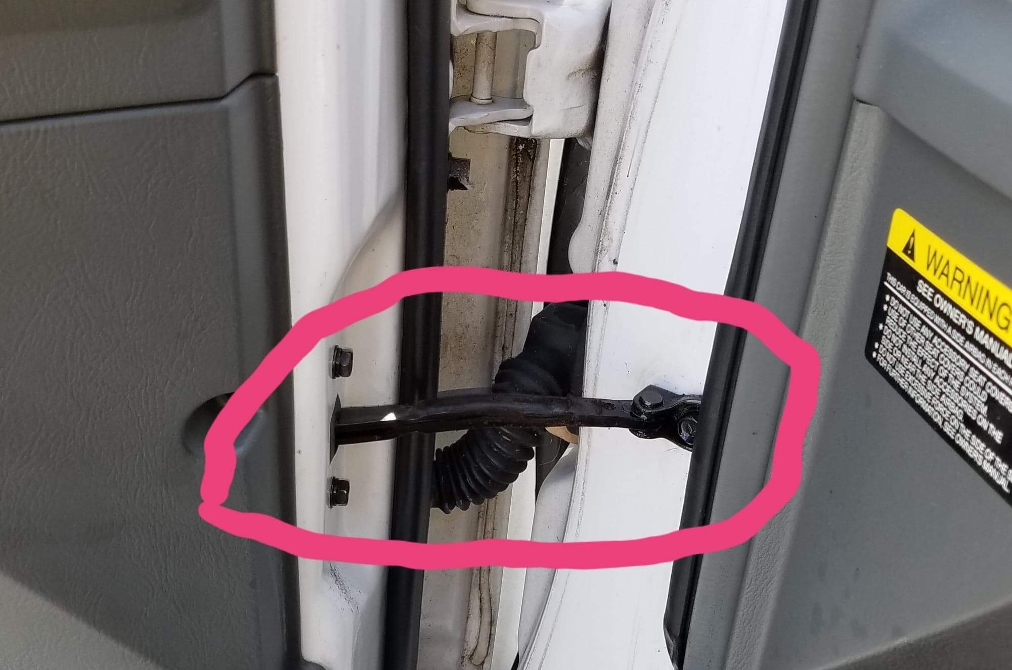Hi, my vehicle is in great shape but some parts are getting worn. There is a black bar on the door that attaches to the body and retracts into the door panel. It is making noise, looks worn and it is getting harder to open and shut the door.